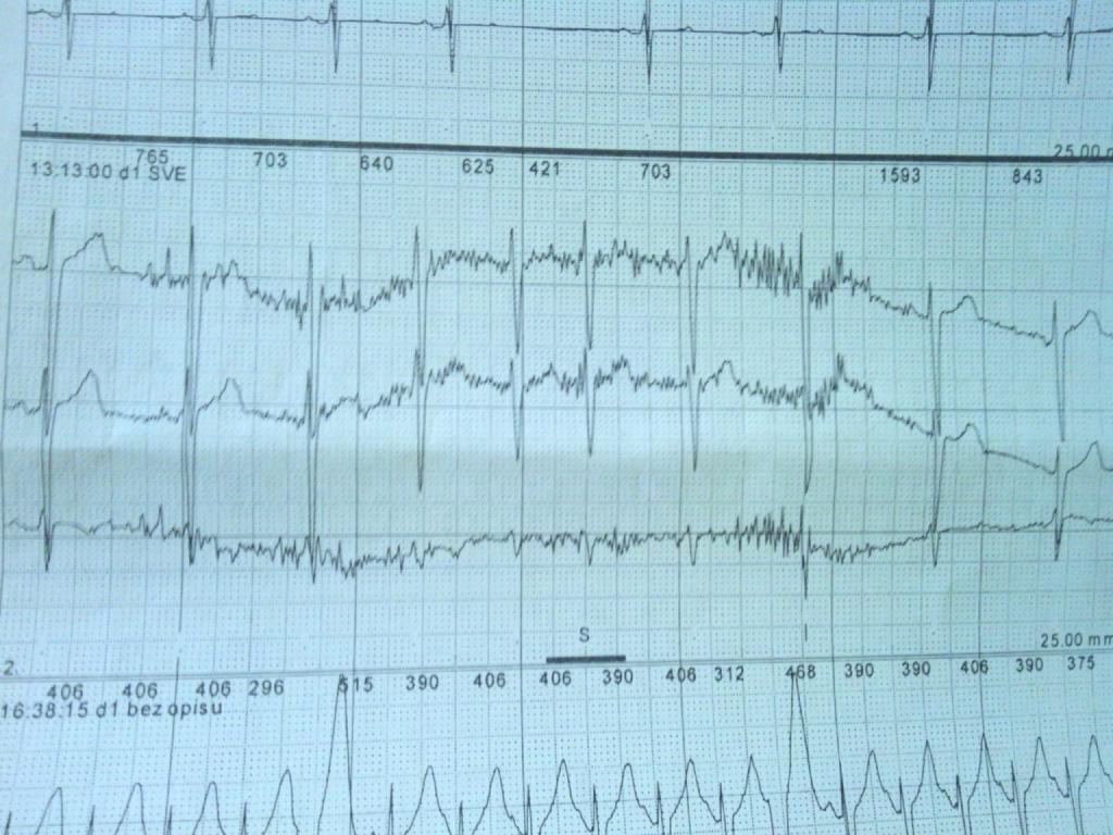 Witam. Jakiś czas temu miałem robione EKG z uwagi na "potknięcia" serca. Załączam zdjęcie fragmentu badania, który mnie zaniepokoił - chciałbym poprosić o jego interpretację. Dodam, że kardiolog nie widział nic niepokojącego - ale chyba dość dziwnie wygląda ten zapis. http://images65.fotosik.pl/894/f6fdc1c481ccf037.jpg