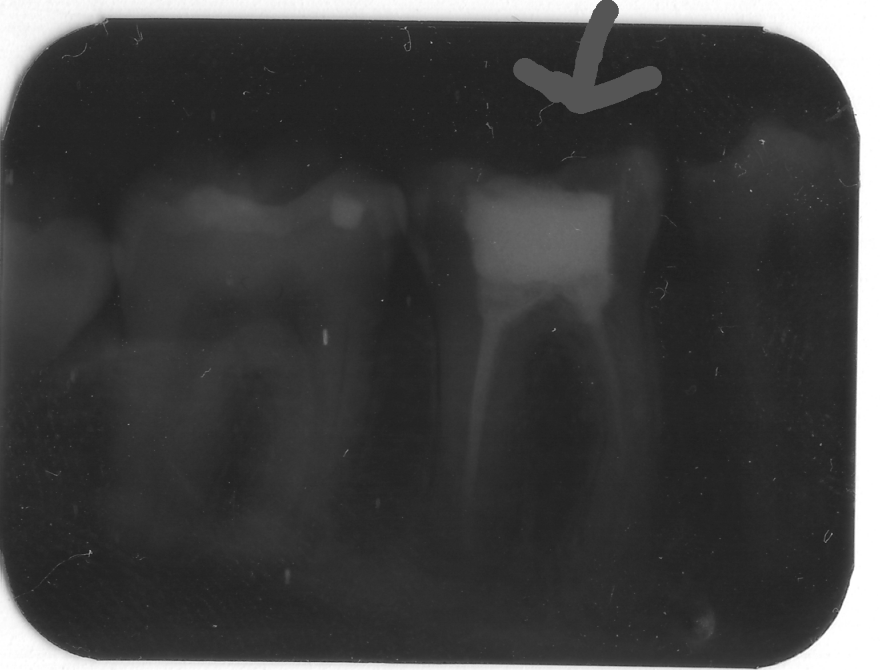 Pani doktor mi powiedziała, że nie widzi żadnych zmian na tym zdjęciu zęba zaznaczonego strzałką.